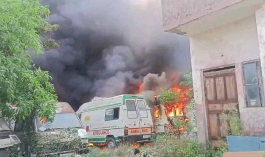 बाराबंकी बड़ा हादसा: जैदपुर CHC में खड़ी 13 एंबुलेंस जलकर खाक, मची अफरा-तफरी